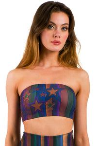 Get ready to channel your inner flower child with the Michelle Floral Bandeau. This versatile and vintage-inspired crop top features smooth slippery fabric and a 1960's hand-drawn print. Perfect for layering or wearing solo, this groovy bandeau will make you feel like a carefree gypsy queen.
